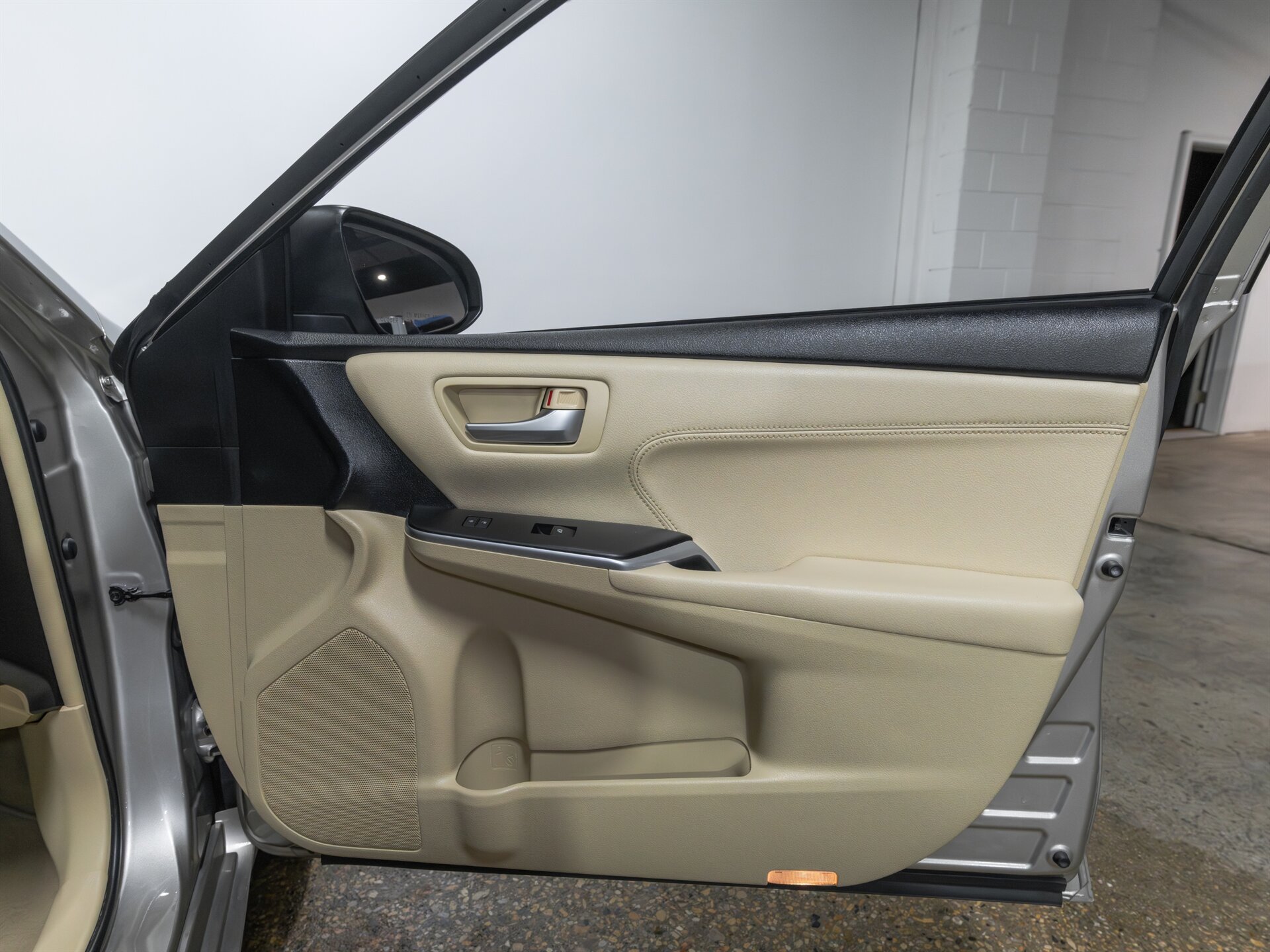 This 2015 Toyota Camry XLE Sedan comes finished in Creme Brulee Mica with an Almond leather interior and is powered by Toyota’s reliable 2.5L 4-cylinder engine paired with a 6-speed automatic transmission. A comfortable, fuel-efficient, and well-equipped sedan with desirable factory options and an original MSRP of $30,355.