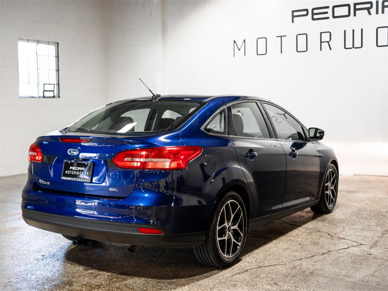 The 2017 Ford Focus SEL offers a sporty design, excellent efficiency, and modern technology in a practical compact sedan. Finished in Kona Blue Metallic with a refined Charcoal interior, this Focus delivers both style and everyday comfort.