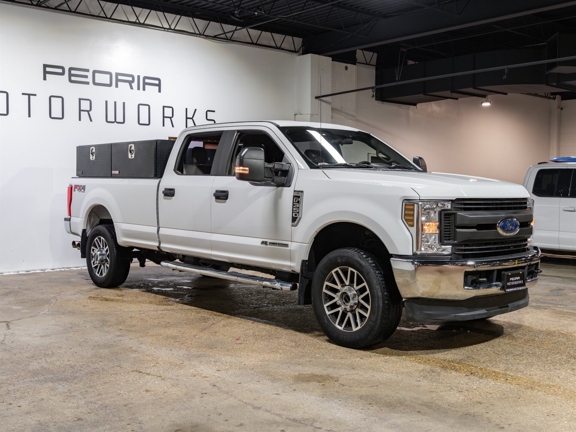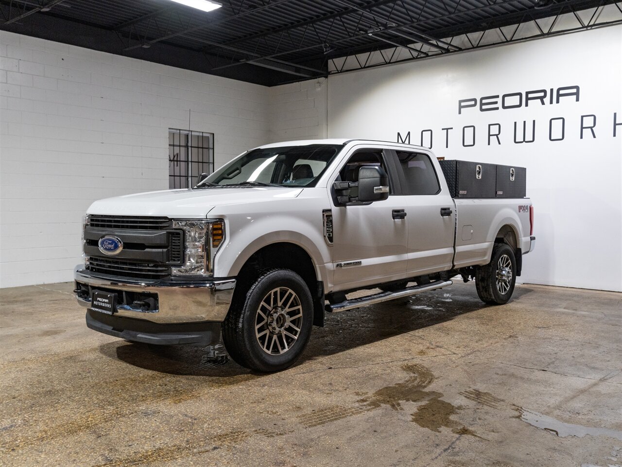 This 2019 Ford F-350 Super Duty XL SRW 4x4 Crew Cab comes finished in Oxford White with a durable Medium Earth Gray Vinyl interior and is powered by the legendary 6.7L Power Stroke V8 Turbo Diesel. Exceptionally well-equipped for work or towing, this truck includes multiple high-value factory packages, added bed storage solutions, and carried an original MSRP of $56,360.