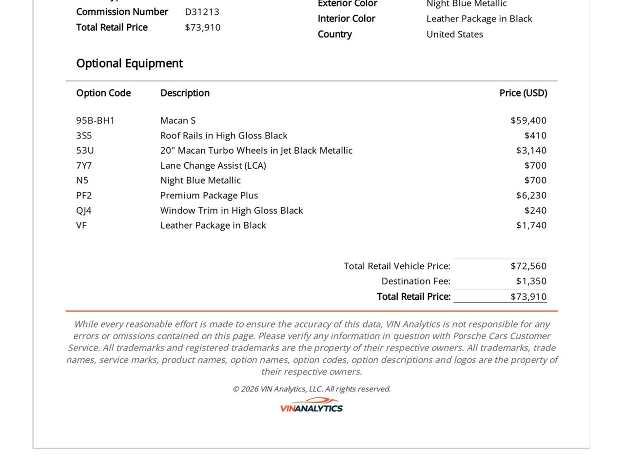 Experience the perfect blend of Porsche performance, luxury, and everyday usability with this Macan S, finished in Night Blue Metallic over a Black Leather interior. With an original MSRP of $73,910, this Macan is well optioned and beautifully configured with a great maintenance history.